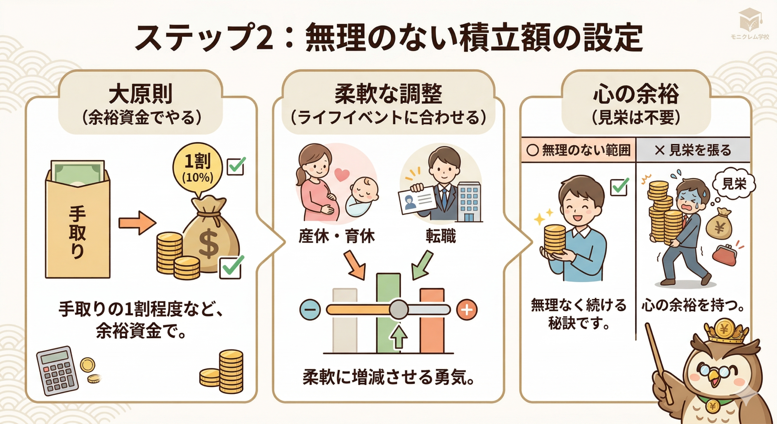 手取りの1割程度の余裕資金でやるのが大原則じゃ。