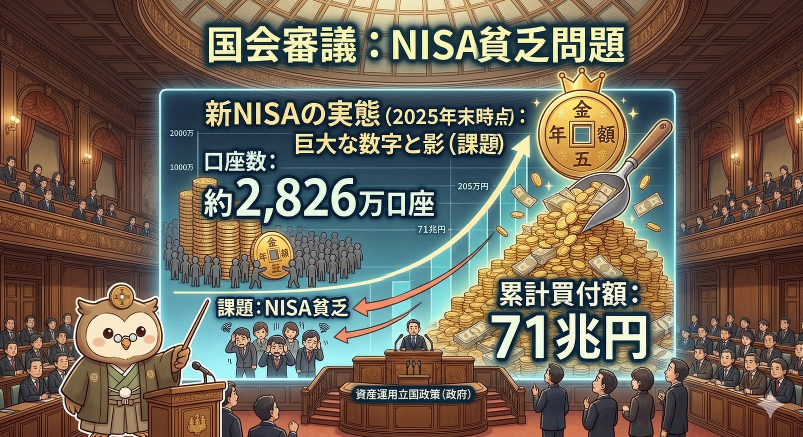 2025年末時点でNISA口座数は約2,826万、累計買付額は71兆円に達しとる。