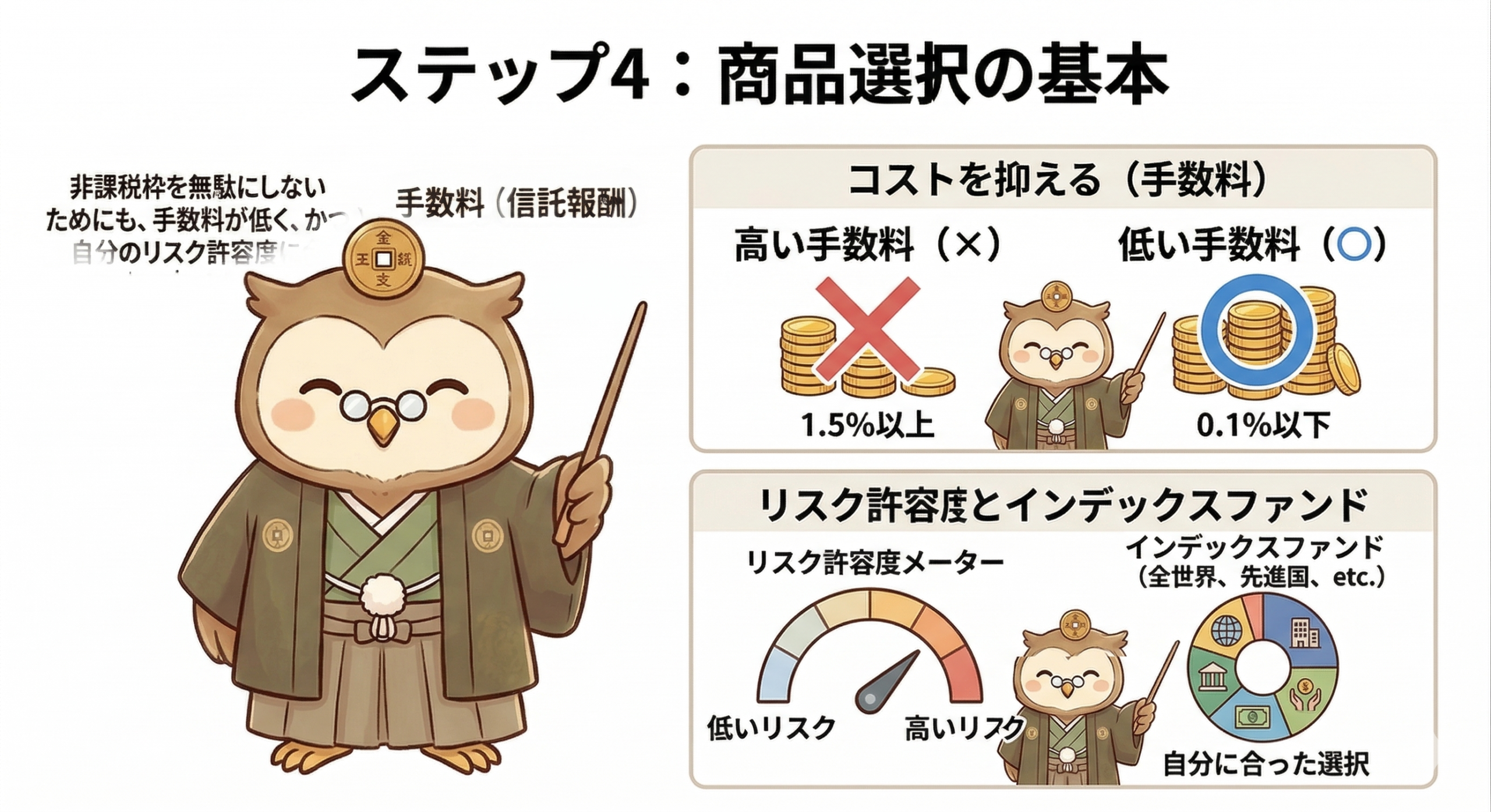 他人の完コピではなく、自分のリスク許容度に合ったインデックスファンドを選ぶこと。