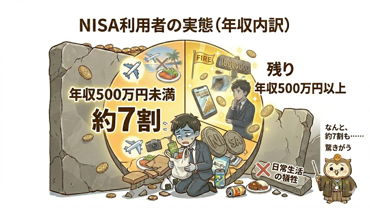 「手取り40万円もある人の極端な趣味じゃろ」と思うかもしれんが、NISA利用者の約7割は年収500万円未満の層じゃのお。