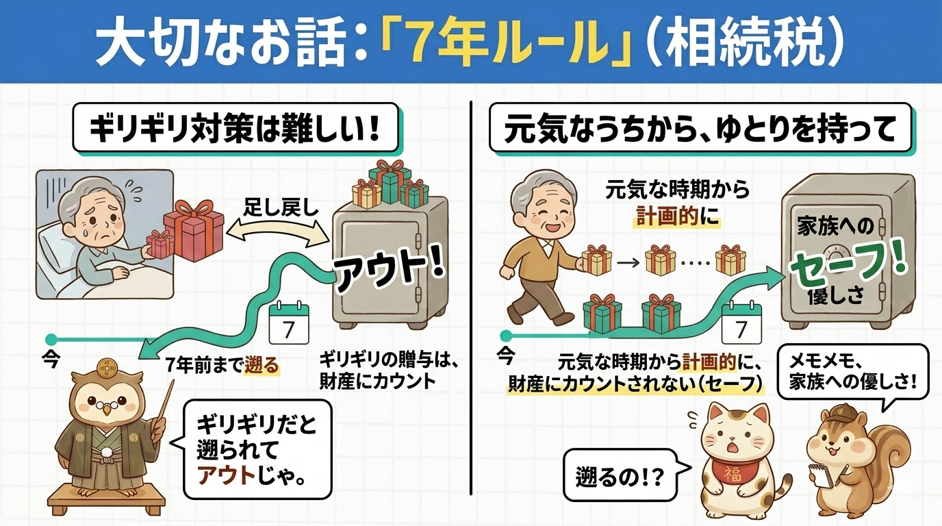 7年ルールがあるからこそ、10年・20年とコツコツ長い時間をかけて渡していくことが一番の守りになります。