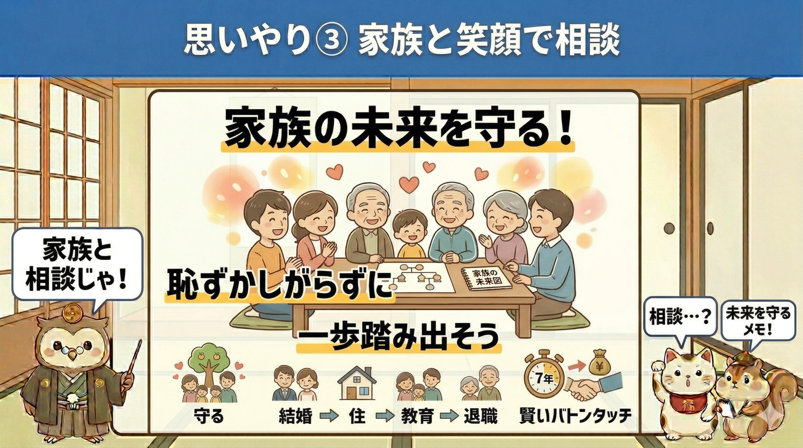 お金をどう残すかは、家族の未来をどう守るかということ。恥ずかしがらずに少しずつ相談してみてください。