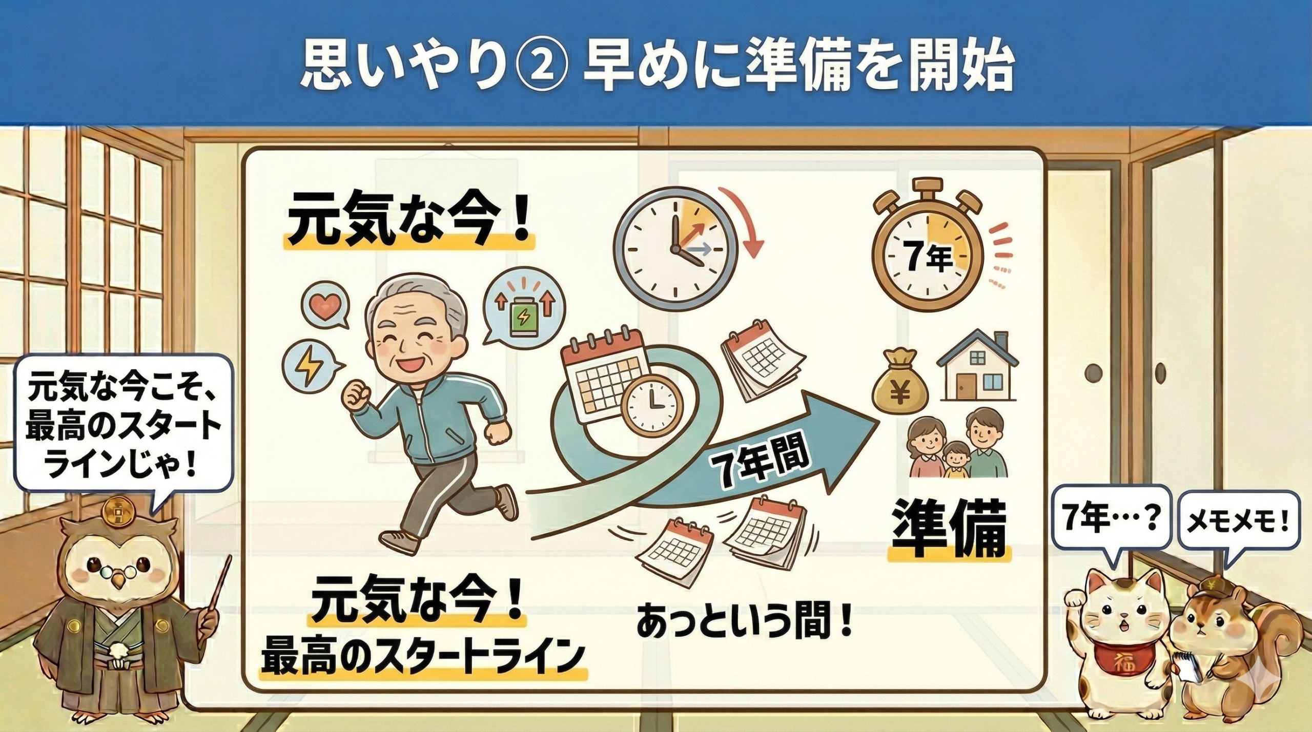 7年という時間は意外とあっという間です。元気な今が最高のスタートラインです。