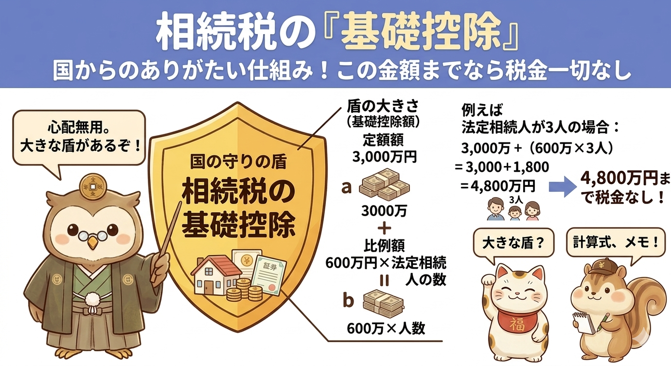 ただし、相続には基礎控除という大きな守りの盾が用意されています。