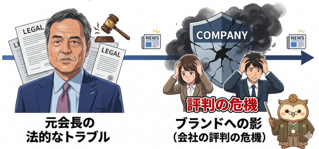 しかしその矢先に元会長の書類送検というスキャンダルが発覚し、企業ブランドに大きな影を落としました。