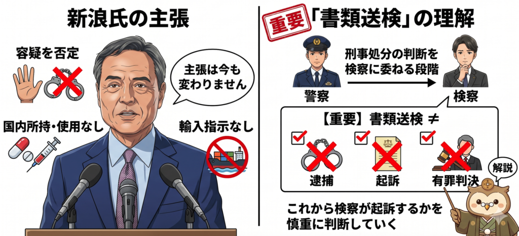昨年9月の記者会見では「日本国内で所持も使用もしておらず、輸入も指示していない」と述べており、この主張は現在も変わっていません。