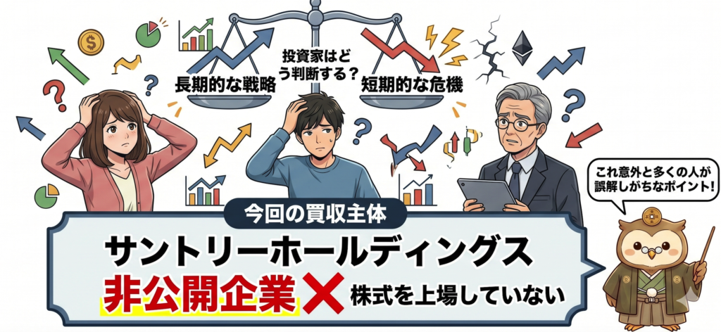 今回の買収の主体であるサントリーホールディングス本体は株式を上場していない非公開企業です。