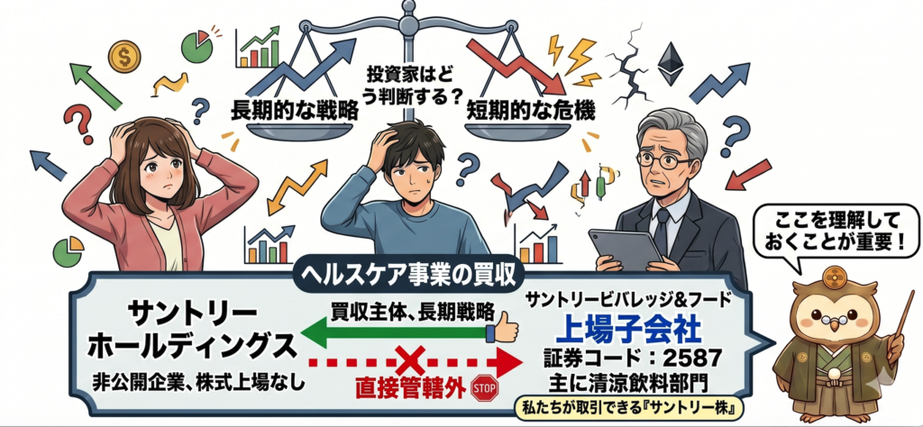 ここは主に清涼飲料部門を担っているため、今回のヘルスケア事業の買収は直接の管轄外ということになります。