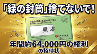 支援 捨てないで!緑の封筒【年間約6万円の損】年金生活者支援給付金 年間6万円以上もらえる年金生活者支援給付金。対象者の半数が未受給のまま。対象条件・手続き方法・詐欺対策を分かりやすく解説します。 2026.03.30 支援